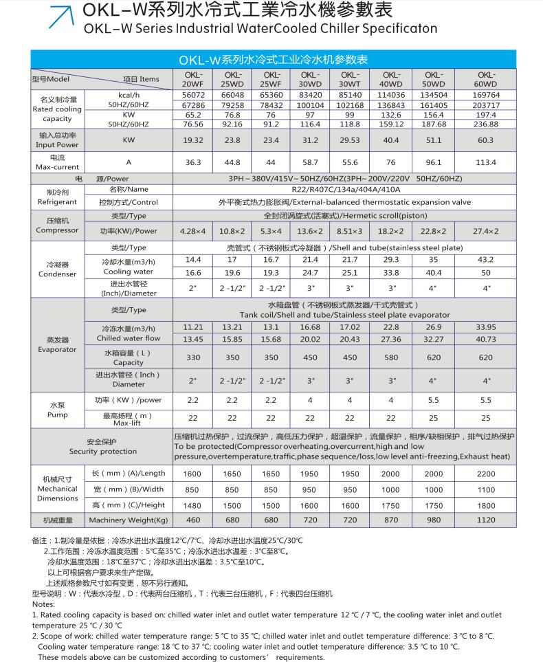 歐科隆牌風(fēng)冷式冷水機(jī)之制冷心臟采用全密封低噪音,振動(dòng)小,高效能省電進(jìn)口名牌壓縮機(jī),電器控制全部采用進(jìn)口名牌原件,熱交換器采用殼管式冷凝器,換熱效能高,便于清洗保養(yǎng)。